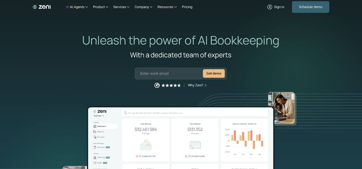 Zeni targets high-growth startups with AI bookkeeping combined with financial planning and analysis. Real-time dashboards provide immediate visibility into burn rates, runway, and unit economics key for venture-backed companies.