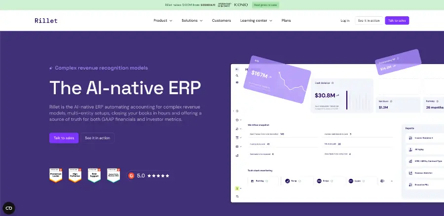 Rillet is an AI ERP system built to handle complex revenue recognition, multi-entity accounting, and real-time financial management from day one.