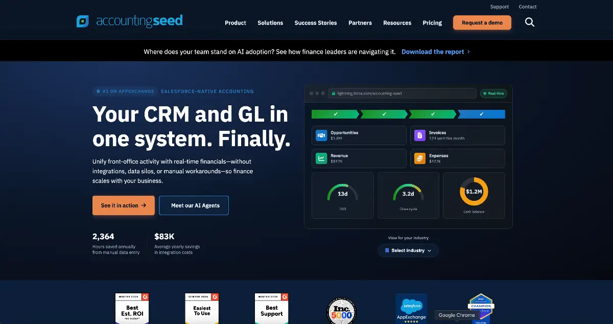 Picture Certinia with the complexity stripped out. GL, AP, AR, billing, reporting, all native inside Salesforce. Finance works in the same org as sales. Zero integration layer to manage or troubleshoot. Not as deep as Certinia, but for teams that need solid accounting without the price tag, that’s a feature.